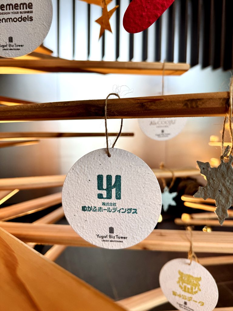 ツリーには、土に還るシードペーパー製のオーナメントを飾り付けています。